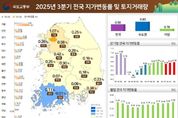 oto방송 김민석 기자 | 국토교통부와 한국부동산원(원장 손태락)은 '25년 3분기 지가변동률 및 토지거래량을 발표했다. ★ 지가변동률 '25년 3분기 전국 지가는 0.58% 상승했다. 상승폭은 '25년 2분기(0.55%) 대비 0.03%p 확대, '24년 3분기(0.59%) 대비 0.01%p 축소된 것으로 나타났다. '25년 9월 지가변동률은 0.20%로, '25년 8월(0.19%) 대비 0.01%p, '24년 9월(0.19%) 대비 0.01%p 높은 수준으로 나타났다. (지역별) '25년 3분기 지가변동률은 수도권(0.74% → 0.80%)은 '25년 2분기 변동률 대비 높은 수준, 지방권(0.22% → 0.19%)은 낮은 수준을 보였다. (시·도) 17개 시·도 중 서울(1.07%)이 전국 평균(0.58%)을 상회했다. (시·군·구) 서울 용산구 1.96%, 서울 강남구 1.68%, 서울 서초구 1.35% 등 252개 시군구 중 40개 시군구가 전국 평균을 상회했다. 또한, 252개 시군구 중 199개 시군구가 0.00% ~ 0.80% 수준을 나타내었으며, 주로 수도권