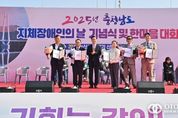 oto방송 김민석 기자 | 충남도는 31일 논산 시민운동장에서 지체장애인의 권익신장과 화합을 다지는 ‘2025 충남지체장애인의 날 기념식 및 한마음대회’를 개최했다. 충남지체장애인협회가 주최하고 충남지체장애인협회 논산시지회(지회장 손병복)가 주관한 기념식에는 김태흠 지사를 비롯해 백성현 논산시장, 이건휘 (사)한국지체장애인협회충남협회장, 손병복 충남협회 논산시지회장, 도민 등 2500여 명이 참석해 자리를 빛냈다. 행사는 축하공연을 시작으로 유공자 표창 및 감사패 수여, 전동보장구 및 지정기탁금전달, 기념사 및 축사 등 순으로 진행됐다. 표창 및 감사패는 장애인의 권익신장과 지역사회의 복지증진에 기여한 17명이 도지사, 도의회의장, 교육감, 경찰청장 표창 등을 수상했다. 김 지사는 유공자들에게 표창장을 직접 수여한 뒤 기념사를 통해 “장애인의 생활이 비장애인과 차이가 없을수록 선진국이라고 생각한다”며 “장애인과 비장애인 구분 없이 어우러져 살아갈 수 있도록 전국 최고의 장애인 친화도시 충남을 만들어 나가겠다”고 강조했다. 한편, ‘지체장애인의 날’은 (사)한국지체장애인협회가 매년 1