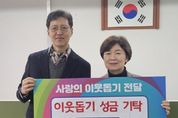 oto방송 김민석 기자 | 평택시 팽성읍 주민 최희순 님이 어려운 이웃을 위한 따뜻한 나눔을 실천했다. 최희순 님은 지난 22일, 경제적 어려움을 겪고 있는 관내 취약계층을 돕기 위해 성금 100만 원을 팽성읍 행정복지센터에 전달했다. 최희순 님은 평소 지역사회에 대한 깊은 애정을 바탕으로 나눔과 봉사를 꾸준히 실천하고 있으며, 수년간 지속적인 성금 기부를 통해 이웃사랑을 몸소 보여주고 있다. 특히 영남 지역 산불 피해가 발생했을 당시에는 피해 복구와 이재민 지원을 위해 500만 원을 기부하는 등 어려운 이웃을 위한 따뜻한 나눔을 실천해 주민들로부터 모범이 되고 있다. 최희순 님은 “작은 정성이지만 도움이 필요한 이웃들에게 따뜻한 위로가 되길 바란다”라며, 앞으로도 지역사회를 위한 나눔을 지속해 나가고 싶다고 전했다. 이에 이근영 팽성읍장은 “이웃을 생각하는 소중한 마음이 담긴 기부에 깊이 감사드린다”라며 “기부하신 성금은 도움이 절실한 분들께 정성껏 전달하겠다”라고 말했다. 한편, 이번에 전달된 성금은 평택행복나눔본부를 통해 장애인 가구 등 지역 내 취약계층에 지원될 예정이다.