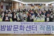 oto방송 김민석 기자 | 수원시 장안구 율천동 주민자치회는 지난 8일 율천동 밤밭문화센터 3층 대강당에서 '2025 율천동 밤밭문화센터 작품발표회'를 성황리에 개최했다. 이번 발표회에는 강사와 수강생, 지역 주민 등 200여 명이 함께했으며, 그동안 수업을 통해 쌓아온 실력을 발표하고 서로를 격려하는 시간을 가졌다. 특히 올해는 사전 공연으로 마련된 매직쇼가 연말 분위기를 한껏 고조시키며 참석자들의 큰 호응을 얻었다. 본 공연에서는 퓨전장구, 노래교실(합창), 라인댄스 등 7개 프로그램의 무대가 펼쳐졌으며, 꽃꽂이, 서양화, 퀼트 등의 작품 전시존도 함께 마련되어 다채로운 볼거리를 제공했다. 정찬해 주민자치회장은 “작품발표회를 위해 애쓰신 수강생과 강사 여러분께 깊은 감사를 드린다”며 “앞으로도 주민들이 쉽게 참여할 수 있는 생활문화 프로그램을 운영하고, 쾌적한 환경에서 즐겁게 문화생활을 누릴 수 있도록 밤밭문화센터 발전을 위해 최선을 다하겠다”고 말했다. 성영신 율천동장은 “배움이 있는 공간은 지역 공동체를 더 따뜻하게 만든다”며 “프로그램 운영이 안정적으로 이어질 수 있도록 적극 협조하겠다”고