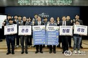 oto방송 김민석 기자 | 화성특례시와 전국공무원노동조합 화성시지부가 3일 시청 대회의실에서 ‘2025년 하반기 공무원 노사협의회’를 개최했다. 이날 협의회에는 정명근 화성특례시장과 최태성 전국공무원노동조합 화성시지부장을 비롯한 시 집행부, 노조 간부 등 18명이 자리해, 신뢰와 존중을 바탕으로 한 건강한 조직문화 조성을 위해 협력하기로 했다. 협의회는 ▲베스트 간부공무원에 대한 시상 ▲직장 내 괴롭힘 설문조사 결과보고 ▲노사협력 활동 제안 ▲부서별 노사협의 안건 논의 순으로 진행됐다. 특히, 노사 양측은 직장 내 괴롭힘 실태와 조직문화 개선 방안을 중심으로 진솔한 의견을 나누며, 상호 존중과 소통이 살아 있는 공직문화 확립을 위한 다양한 방안을 모색했다. 또한, ‘화성특례시 모두의 약속’ 퍼포먼스를 통해 청렴과 공정, 평등의 가치를 함께 되새기며 건강한 조직문화 정착을 위한 노사 간 의지를 다졌다. 정명근 화성특례시장은 “건강한 조직문화는 노사 모두가 함께 만들어가는 가치”라며 “시 또한 열린 자세로 소통하며 시와 노동조합이 서로 신뢰를 더욱 굳건히 해 함께 성장하는 공직사회를 만들어