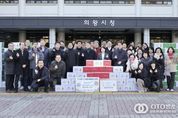 oto방송 김민석 기자 | 의왕시가 새중앙교회로부터 크리스마스를 맞아 어려운 이웃을 돕기 위한 생필품 꾸러미 ‘사랑의 천사박스’ 1,004상자(약 4,000만 원 상당)를 기부받았다고 밝혔다. 시청 본관 앞 광장에서 열린 전달식에는 새중앙교회 황덕영 담임목사와 나문성·박재관 목사, 이칠수·신종범·김경화 장로 등 새중앙교회 관계자들이 참석해 따뜻한 나눔의 뜻을 함께했다. 새중앙교회 황덕영 담임목사는“크리스마스를 맞아 소외된 이웃들에게 사랑을 전하고자 하는 성도들의 마음을 모아 사랑의 천사박스를 준비했다”며“이 작은 정성이 어려운 이웃들에게 위로가 되고, 따뜻한 겨울을 보내는 데 도움이 되기를 바란다”고 말했다. 방경미 복지문화국장은“해마다 변함없이 나눔을 실천해 주시는 새중앙교회와 성도 여러분께 깊이 감사드린다”며“시에서도 소외되는 이웃이 없도록 지역사회를 더욱 세심하게 살피고, 촘촘한 복지 지원에 최선을 다하겠다”고 밝혔다. 한편, 이날 기부된 생필품 꾸러미는 경기사회복지공동모금회에 기탁 처리된 후, 관내 저소득층 가구에 전달될 예정이다.