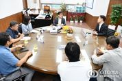 oto방송 김민석 기자 | 수원시 영통구는 지난 19일 영통구 축구연합회 임원진과 간담회를 실시했다. 이번 간담회는 오는 10월과 11월에 예정된 영통구청장배 생활체육 축구대회(유소년부 및 성인부)를 앞두고 준비 상황을 점검하는 한편, 지역주민의 체력 증진 및 건전한 여가선용을 위한 생활체육 저변 확대 방안을 모색하고자 마련됐다. 이날 자리에서는 생활체육 활성화를 위해 최선을 다하는 영통구 축구연합회의 노고에 감사하는 마음을 전함과 동시에, 생활체육 발전을 위해 필요한 다양한 의견들을 청취하는 시간을 가졌다. 장수석 영통구청장은 “영통구 생활체육 활성화를 위해 애쓰시는 영통구 축구연합회 임원진 여러분들의 노력에 감사드린다”며 “앞으로도 연합회가 원활한 활동을 할 수 있도록 적극 지원하겠다”고 말했다.