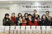 oto방송 김민석 기자 | 수원시 팔달구 매교동 새마을부녀회는 지난 16일 연말을 맞아 매교동 행정복지센터 대회의실에서 관내 홀몸어르신 및 저소득층을 위한 ‘사랑의 떡국 나눔 행사’를 진행했다. 이날 새마을부녀회 회원들은 새해를 앞두고 따뜻한 마음을 담아 떡국 밀키트 등 음식을 정성껏 준비해 관내 홀몸어르신과 저소득층 50가구에 직접 전달하며 이웃사랑을 실천했다. 이미정 매교동 새마을부녀회장은 “정성껏 준비한 떡국이 추운 겨울을 보내는 이웃들에게 힘이 되길 바란다”며 “앞으로도 지역의 어려운 이웃들을 위한 나눔 활동을 꾸준히 이어가겠다”고 말했다. 이지효 매교동장은 “항상 지역사회를 위해 애써주시는 새마을부녀회 회원들께 감사드린다”며 “이웃들에게 전달된 따뜻한 마음이 겨울을 보내는 데 도움이 되길 바란다”고 전했다.