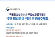 oto방송 김민석 기자 | 식품의약품안전처는 국민이 체감하는 탁월한 성과를 창출한 공무원을 국민이 직접 추천해 포상하는 ‘국민추천제’를 1월 20일부터 운영한다고 밝혔다. ‘국민추천제’는 ‘인사는 공정하게, 신상필벌은 확실하게’라는 국민주권정부의 국정철학을 바탕으로 공직사회의 성과 보상 체계를 혁신하고자 올해부터 범정부적으로 도입한 '공무원 특별성과 포상금 제도'의 일환이다. 소관 업무 분야에서 통상적인 직무수준을 뛰어넘는 특별한 성과를 달성한 공무원에게는 기관장 표창과 함께 1인당 최대 3천만원 이내의 파격적인 수준의 포상금을 지급하는 한편, 기관 누리집과 SNS 등을 통해 특별성과 사례를 국민에게 알리고 성과 중심의 공직문화를 조성한다. 1월 20일부터 국민 누구나 식약처 소속 공무원 중 우수한 성과를 창출한 공무원을 365일 언제든지 추천할 수 있다. 오유경 식약처장은 “공무원이 국가와 국민의 이익을 증진하고 공공의 안전과 질서 유지에 앞장선 성과를 체감하는 사람은 국민”이라며, “특별성과 포상금 제도에 국민추천 방식을 도입함으로써 국민이 체감하는 성과가 정당하게 평가받고 보상받는 성과 중심의