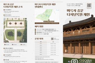 oto방송 김민석 기자 | 국가유산청 국립문화유산연구원은 익산시와 함께 2026년 2월 8일까지 익산 미륵사지(전북 익산시) 현장에서, 세계유산인 익산 미륵사 중문(동원·중원·서원) 건축물을 증강현실로 디지털 복원해 현장에서 보고 느낄 수 있는 '미륵사 디지털 복원 체험 안내센터'를 운영한다. 미륵사는 7세기 백제 무왕 때 왕실의 안녕과 중생의 불도를 기원하며 창건됐으며, 현재는 국보 '익산 미륵사지 석탑'이 남아있다. 3개의 탑과 금당, 승방, 강당이 각각 짝을 이뤄 동·서로 나란히 배치된 ‘3탑 3금당’의 독특한 형식을 갖고 있었다. 국립문화유산연구원은 2008년부터 진행해 온 미륵사 고증연구 결과를 토대로 미륵사의 동·서원 중문은 단층건물의 형태로, 중원 중문은 2층 규모의 평공포와 하앙구조의 두 가지 모습으로 디지털 복원했다. 참가자들은 ‘태블릿 컴퓨터(PC)’와 안경처럼 눈에 직접 착용하는 ‘스마트 글라스’를 사용해 미륵사 중문의 디지털 복원 과정을 담은 만화 영화(애니메이션)와 각 건축 부재에 대한 설명을 살펴보고, 확대·축소·회전 기능으로 건축물 곳곳을 자세히 들여다볼 수 있다. 이와 함께, 증강현실 속 미륵사