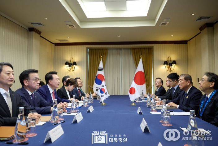 oto방송 김민석 기자 | APEC 정상회의 참석차 페루를 방문 중인 윤석열 대통령은 11월 16일 14시 55분부터 15시 45분까지 약 50분간 '이시바 시게루(石破 茂)' 일본 총리와 한일 정상회담을 가졌다.