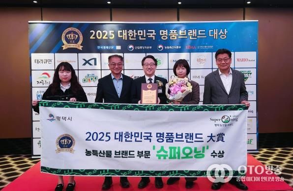 oto방송 김민석 기자 | 평택시는 지난 27일 농특산물 통합브랜드 ‘슈퍼오닝’이 더 플라자 호텔에서 열린 ‘2025 대한민국 명품브랜드 大賞’에서 농특산물 브랜드 부문 대상을 받았다고 밝혔다.