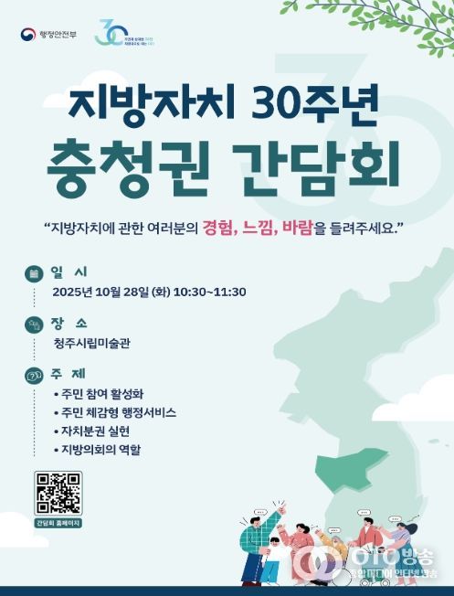 oto방송 김민석 기자 | 행정안전부는 10월 28일 충청북도 청주시립미술관에서 민선 지방자치 30주년 충청권 간담회를 개최한다고 밝혔다.