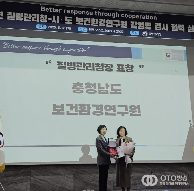 도 보환연은 18일 청주 오스코에서 열린 ‘2025 질병관리청-시도 보건환경연구원 감염병 검사 협력 심포지엄’에서 ‘감염병 검사 분야’ 유공기관으로 선정돼 질병관리청장 기관 표창을 수상했다고 밝혔다.