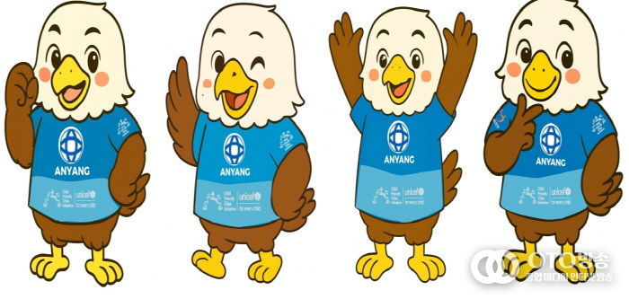 ‘또미’는 안양시 시조(市鳥)인 독수리를 친근하게 의인화한 캐릭터로 유니세프의 아동친화 철학을 담은 파란색 티셔츠를 입고 있는 ‘밝고 정의로운 어린 독수리 친구’이다.