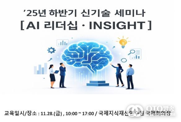 oto방송 김민석 기자 | 지식재산처 국제지식재산연수원은 11월 28일 10시 국제지식재산연수원(대전시 유성구)에서 업무관리자들을 대상으로 ‘인공지능 리더십 교육’을 진행한다고 밝혔다.