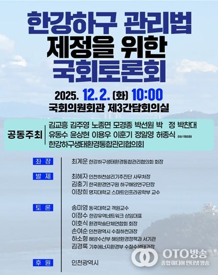 공동 주최 의원들은 “한강하구는 인천과 경기, 나아가 대한민국의 소중한 자연유산이자 미래 자산”이라며 “이번 토론회를 계기로 법적 사각지대에 놓인 한강하구의 체계적인 관리 시스템을 구축하고, 통합 관리를 위한 법적 근거를 마련하는 데 국회 차원의 노력을 다하겠다”고 밝혔다.