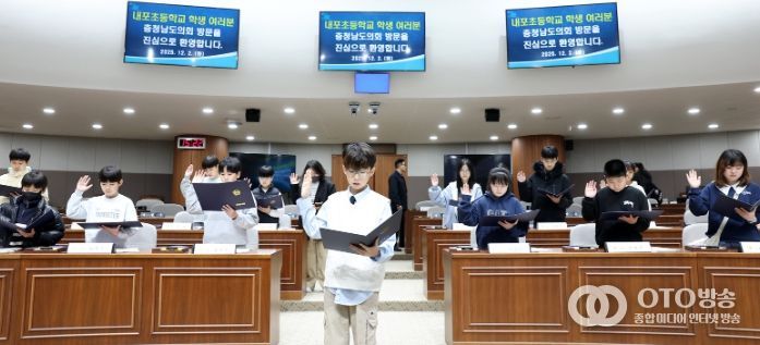 oto방송 김민석 기자 | 충남도의회는 2일 홍성 내포초등학교 학생 20명과 지도교사 1명이 참여한 가운데 ‘청소년 의회교실’을 개최했다.