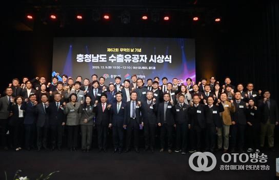 oto방송 김민석 기자 | 충남도는 9일 아산 모나밸리에서 ‘제62회 충청남도 무역의 날 기념식’을 열고 올 한 해 수출·투자 유치 분야에 이바지한 개인과 기업 등을 격려했다.