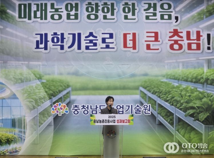 oto방송 김민석 기자 | 충남도 농업기술원은 11일 농업기술원 대강당에서 농업인과 농촌진흥 관계자 등 300여 명이 참석한 가운데 ‘2025 충남농촌진흥사업 성과보고회’를 개최했다.