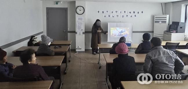 이번 교육은 재활용품 수집 과정에서 발생할 수 있는 교통사고 및 안전사고를 예방하고, 한파에 취약한 어르신들의 건강관리를 돕기 위해 마련됐으며, 안전 관련 동영상 시청을 통해 차도 통행에서 발생할 수 있는 사고 위험성을 안내하고, 재활용품 수집 시 유의 사항과 동절기 한파 대비 건강관리 요령을 중심으로 설명이 이루어졌다.