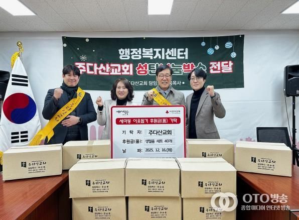 oto방송 김민석 기자 | 오산시 세마동 행정복지센터는 지난 16일 주다산교회가 겨울철 어려움을 겪고 있는 이웃들을 돕기 위해 생필품 세트 40개를 기탁했다고 밝혔다.