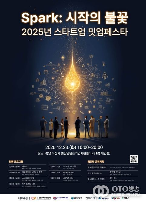 oto방송 김민석 기자 | 충남도는 오는 23일 아산 충남콘텐츠기업지원센터에서 ‘2025년 스타트업 밋업 페스타(Startups, Opening the Future)’를 개최한다고 18일 밝혔다.