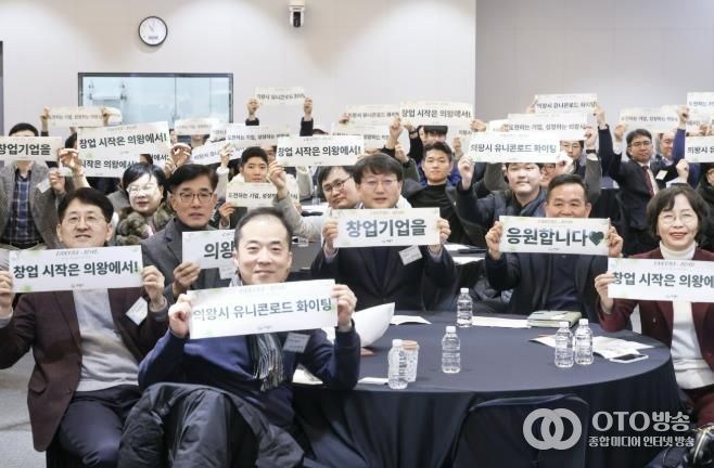oto방송 김민석 기자 | 의왕시가 12월 18일, 한 해 동안 추진해 온 창업기업 성장지원 활동과 성과를 공유하는 ‘2025년 유니콘로드 성과공유 네트워킹’행사를 유니콘로드 입주기업 대표 및 임직원, 유관기관 관계자 100여명이 참석한 가운데 성황리에 마쳤다.