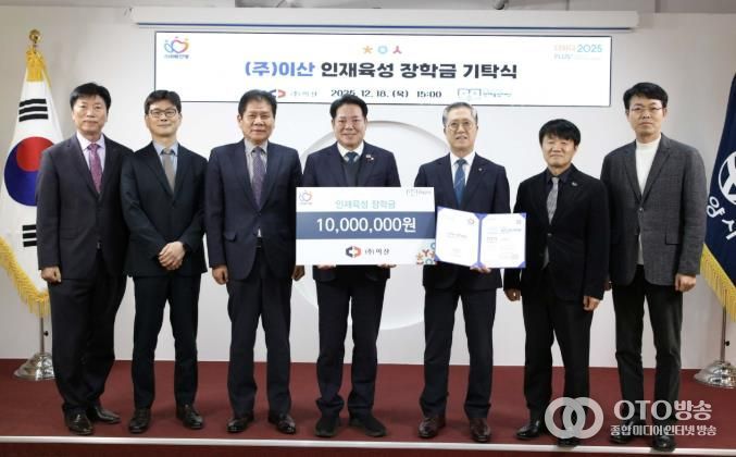 한광두 ㈜이산 사장은 “지역사회로부터 받은 사랑과 성원에 보답하고, 미래세대의 건강한 성장과 꿈을 응원하고자 장학금을 기탁하게 됐다”며, “이 장학금이 학생들에게 든든한 디딤돌이 되길 바란다”고 밝혔다.
