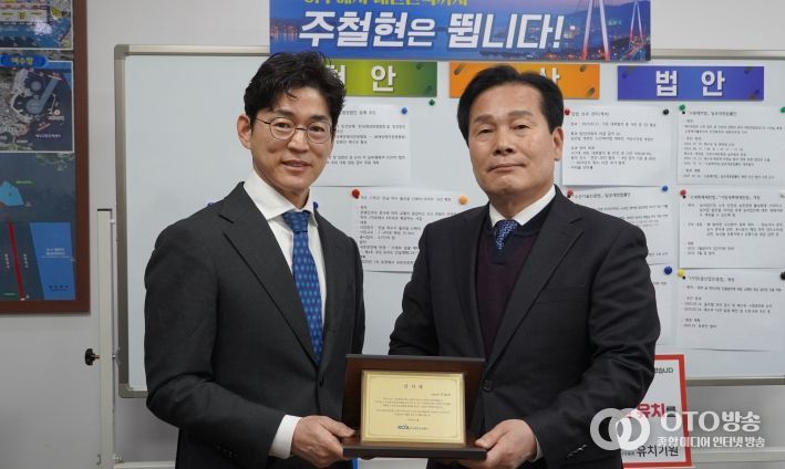 oto방송 김민석 기자 | 더불어민주당 주철현 국회의원(전남 여수시갑)은 22일 한국화학산업협회로부터 국가기간 산업인 석유화학산업의 위기 극복과 경쟁력 강화를 위한 공로로 감사패를 받았다.