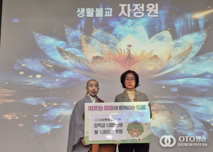 oto방송 김민석 기자 | 의왕시는 12월 21일, 생활불교 자정원이 ‘동지나눔 송년회 행사’에서 지역의 어려운 이웃을 위한 나눔을 실천했다고 밝혔다.