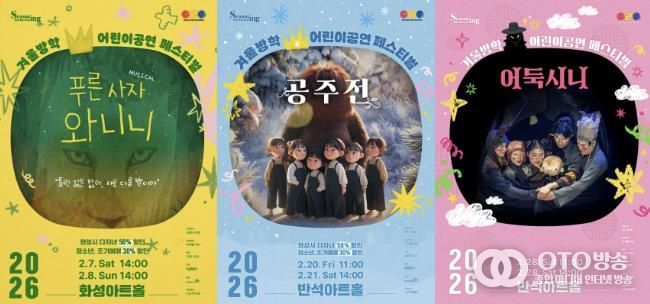 oto방송 김민석 기자 | (재)화성시문화관광재단은 2026년 2월 겨울방학을 맞아 아이들의 상상력과 감성을 풍성하게 채워줄 어린이 공연 페스티벌을 개최한다. 이번 페스티벌은 뮤지컬, 어린이무용, 오브제극 등 다양한 장르의 3개 공연 프로그램과 함께 체험 프로그램을 함께 구성해, 온가족이 즐길 수 있는 문화 축제로 마련됐다.