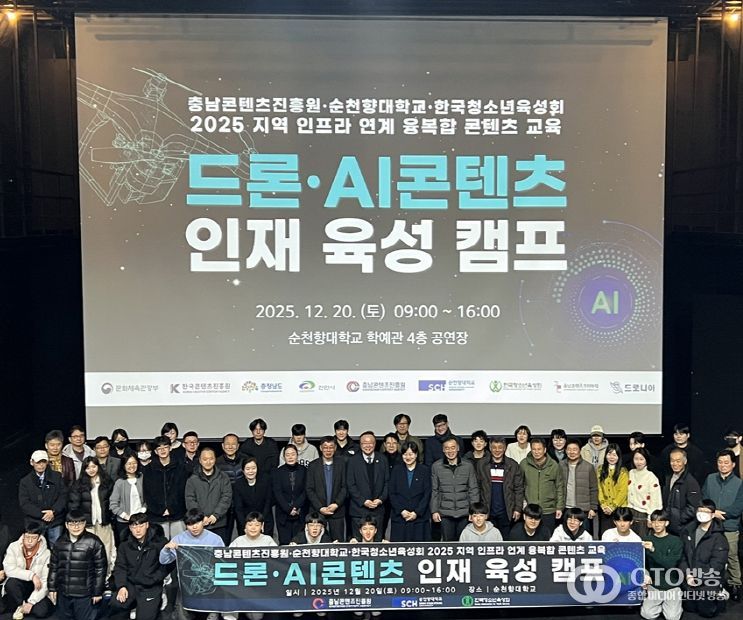 oto방송 김민석 기자 | 충남콘텐츠진흥원은 순천향대학교, 한국청소년육성회와 함께 추진한 ‘드론·AI 콘텐츠 인재 육성 캠프’를 성공적으로 마무리했다고 밝혔다.