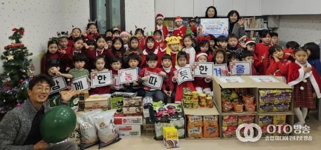 oto방송 김민석 기자 | 시립힐스테이트푸르지오수원 어린이집은 지난 23일, 수원시 팔달구 매교동에 연말을 맞아 관내 어려운 이웃들에게 원생들이 십시일반 모은 식료품 꾸러미를 후원했다.