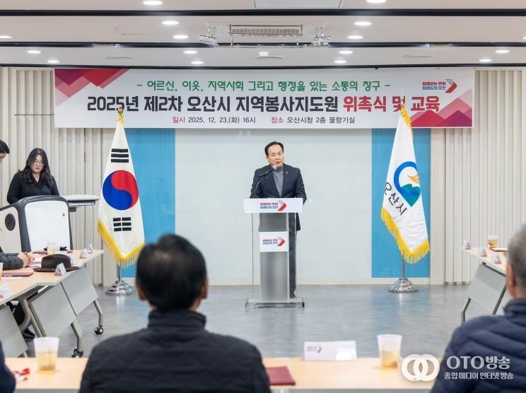 oto방송 김민석 기자 | 오산시는 지난 23일 오산시청 물향기실에서 신규 경로당 회장을 대상으로 한 '2025년 지역봉사지도원 위촉식'을 개최했다고 밝혔다.