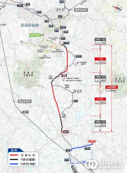 국토교통부는 일제 강점기에 건설된 호남선 가수원역 ~ 논산역 구간의 구불구불한 선형을 바로잡고, 강경선과 연계하여 훈련소 앞 ‘신연무대역’을 신설하는 등의 내용이 담긴 호남선 고속화(가수원~논산) 건설사업 기본계획을 12월 24일 최종 확정·고시한다고 밝혔다.
