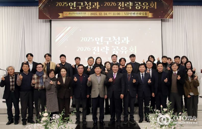 oto방송 김민석 기자 | 충남역사문화연구원은 24일 오전 11시 공주 브이아이피웨딩홀에서 ‘연구원 성과·전략 공유회’를 열고 2025년 주요 성과를 공유하는 한편 2026년 추진 전략을 대내외에 제시했다.