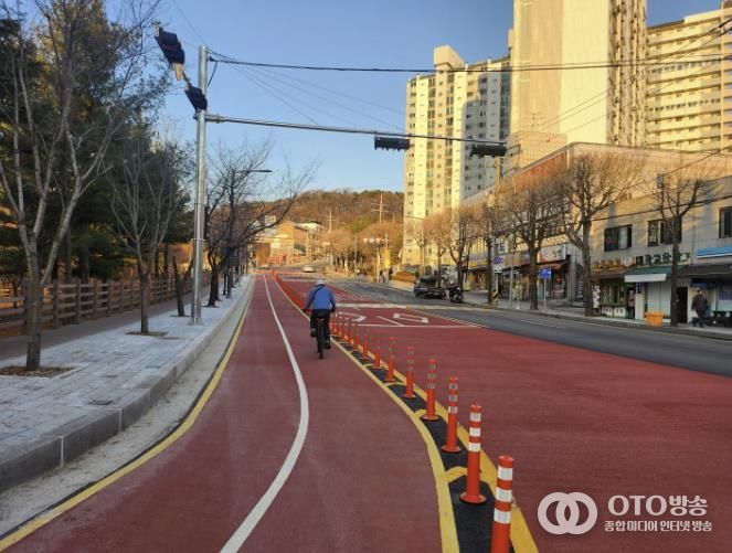 oto방송 김민석 기자 | 수원특례시가 광교산로 교통 혼잡을 줄이기 위한 도로 확장 공사와 자전거도로 조성 공사를 마무리했다.