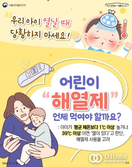 oto방송 김민석 기자 | 식품의약품안전처 소속 식품의약품안전평가원(원장 강석연)은 겨울철에는 고열이 동반된 감기 및 독감 환자의 해열제 사용이 늘어남에 따라, 소아 해열제의 올바른 사용방법을 안내한다고 밝혔다.