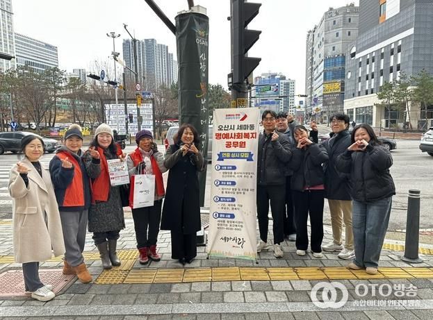 oto방송 김민석 기자 | 오산시 세마동행정복지센터는 지난 24일 세마역 인근 유동인구 밀집 지역에서 세마동 지역사회보장협의체 위원, 명예사회복지공무원, 동 직원들과 함께 ‘명예사회복지공무원 제도 홍보 캠페인’을 실시했다고 밝혔다.