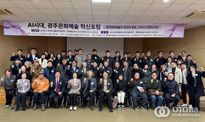 oto방송 김민석 기자 | 민형배 국회의원(더불어민주당, 광주 광산을)과 ‘AI시대, 광주문화예술혁신포럼’ 준비위원회, 조선대학교 과학기술융합학과가 공동 주최한 ‘AI시대 광주문화예술 혁신포럼'이 28일 오전 7시 조선대학교 입석홀에서 개최됐다.