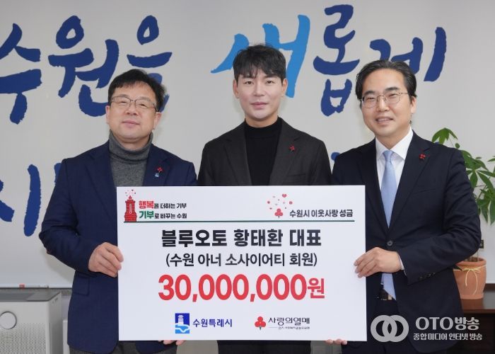 oto방송 김민석 기자 | 황태환 블루오토 대표가 12월 31일 “취약계층 아동 지원에 사용해달라”며 3000만 원을 수원시에 기부했다.