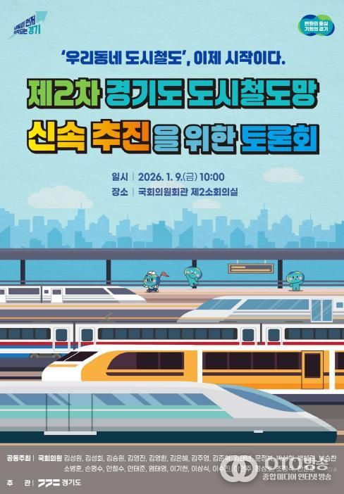 oto방송 김민석 기자 | 경기도가 ‘제2차 경기도 도시철도망 구축계획(′26~′35)’에 반영된 사업들의 실질적인 추진 방안 논의를 위해 9일 국회의원회관 제2소회의실에서 국회토론회를 연다.
