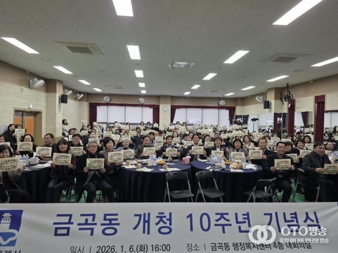 oto방송 김민석 기자 | 2026년 개청 10주년을 맞은 권선구 금곡동은 지난 6일 지역구 의원과 주민 등 100여 명이 참석한 가운데 주민자치회 및 통장협의회와 함께 10주년 기념행사를 개최했다.