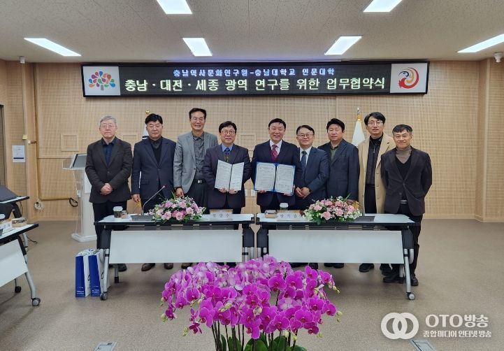 oto방송 김민석 기자 | 충남역사문화연구원(원장 장기승)은 지난 1월 13일 충남대학교 인문대학(학장 정양수)과 ‘충남·대전·세종 초광역 인문사회 연구 강화를 위한 업무협약’을 체결했다.