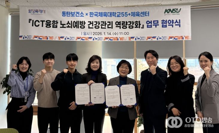 oto방송 김민석 기자 | 화성시동탄보건소는 14일 한국체육대학교 학교기업 55+체육센터와 ‘인공지능(AI)·사물인터넷(IoT) 기반 어르신 건강관리사업과 연계한 노쇠 예방 및 신체활동 증진 프로그램 추진을 위한 업무협약’을 체결했다.