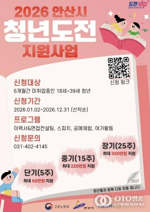 oto방송 김민석 기자 | 안산시가 구직 청년들의 사회 진입과 취업을 지원하기 위해 청년도전 지원 사업 참여자를 모집한다고 15일 밝혔다.