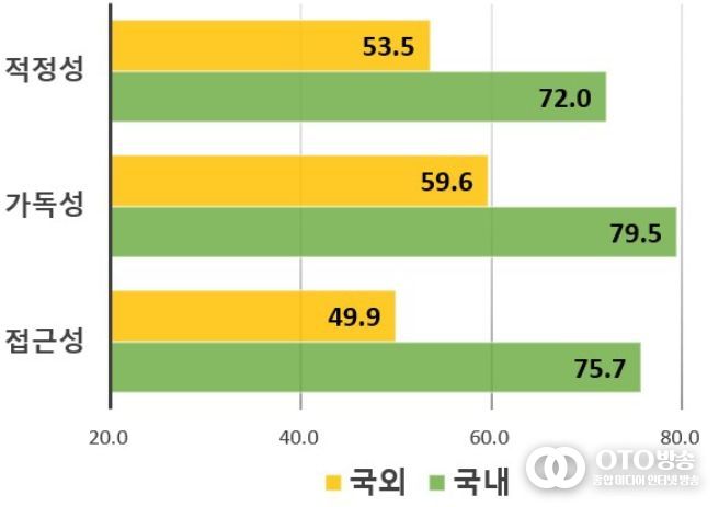 반면 해외사업자의 경우 표준화된 ‘개인정보 처리방침’ 명칭이 아닌 다른 명칭을 사용하거나 정보주체 권리행사 안내를 영문으로만 제공하는 경우도 있어 특히 국내기업 대비 가독성, 접근성 분야에서 낮은 평가를 받았다.