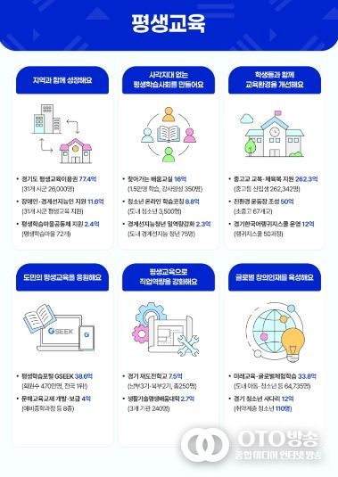 oto방송 김민석 기자 | 경기도가 올해 취·창업 실패 후 재도약을 원하는 사람들을 위한 ‘재도전학교’, 학습 취약계층에 학습 기회를 지원하는 ‘평생교육이용권’, ‘찾아가는 배움교실’ 등 다양한 평생교육 사업을 추진한다.