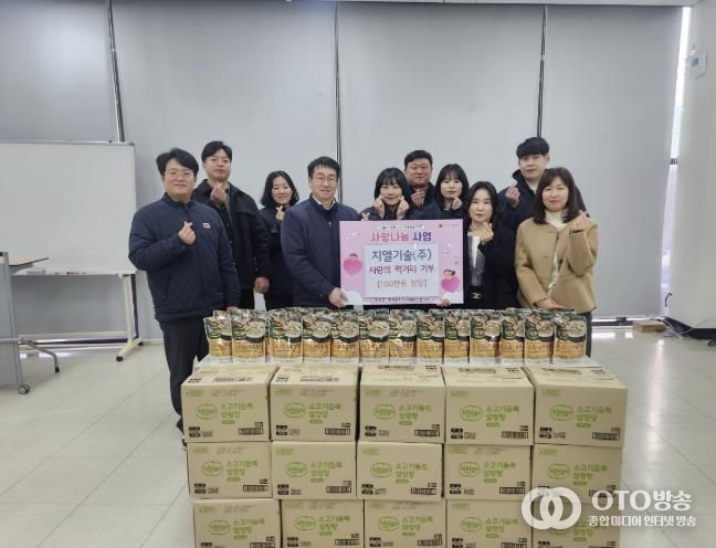 oto방송 김민석 기자 | 의왕시 청계동에 소재한 지엘기술(주)는 1월 15일 지역 내 취약계층을 지원하기 위한 영양식으로 설렁탕 270팩(100만원 상당)을 마련해 청계동 주민센터에 기탁했다.