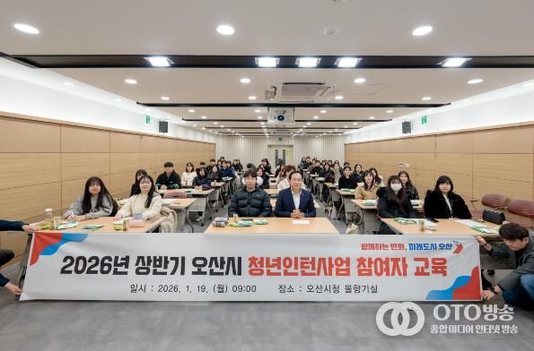 oto방송 김민석 기자 | 오산시는 지난 19일 시청 물향기실에서 상반기 청년인턴 46명을 대상으로 직무역량 강화교육을 실시했다고 밝혔다.