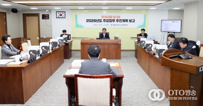 oto방송 김민석 기자 | 충남도의회 농수산해양위원회는 21일 제363회 임시회 1차 회의에서 충남도 남부출장소·농축산국·스마트농업본부·동물위생시험소·축산기술연구소로부터 2026년도 주요 업무계획을 보고받았다.