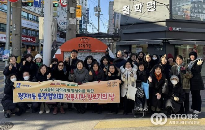 oto방송 김민석 기자 | 수원시 장안구 정자1동 통장협의회가 지난 22일 골목상권에 활력을 불어넣고 지역 상인들을 격려하기 위한 '전통시장 장보기의 날' 행사를 북수원시장에서 진행했다.