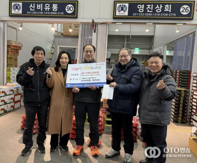 oto방송 김민석 기자 | 수원시 영통구 망포1동은 지난 28일, 수원농수산물도매시장에 있는 신비유통·영진상회에서 저소득 한부모가족을 지원하는 이웃돕기 성금 전달식을 가졌다고 밝혔다.